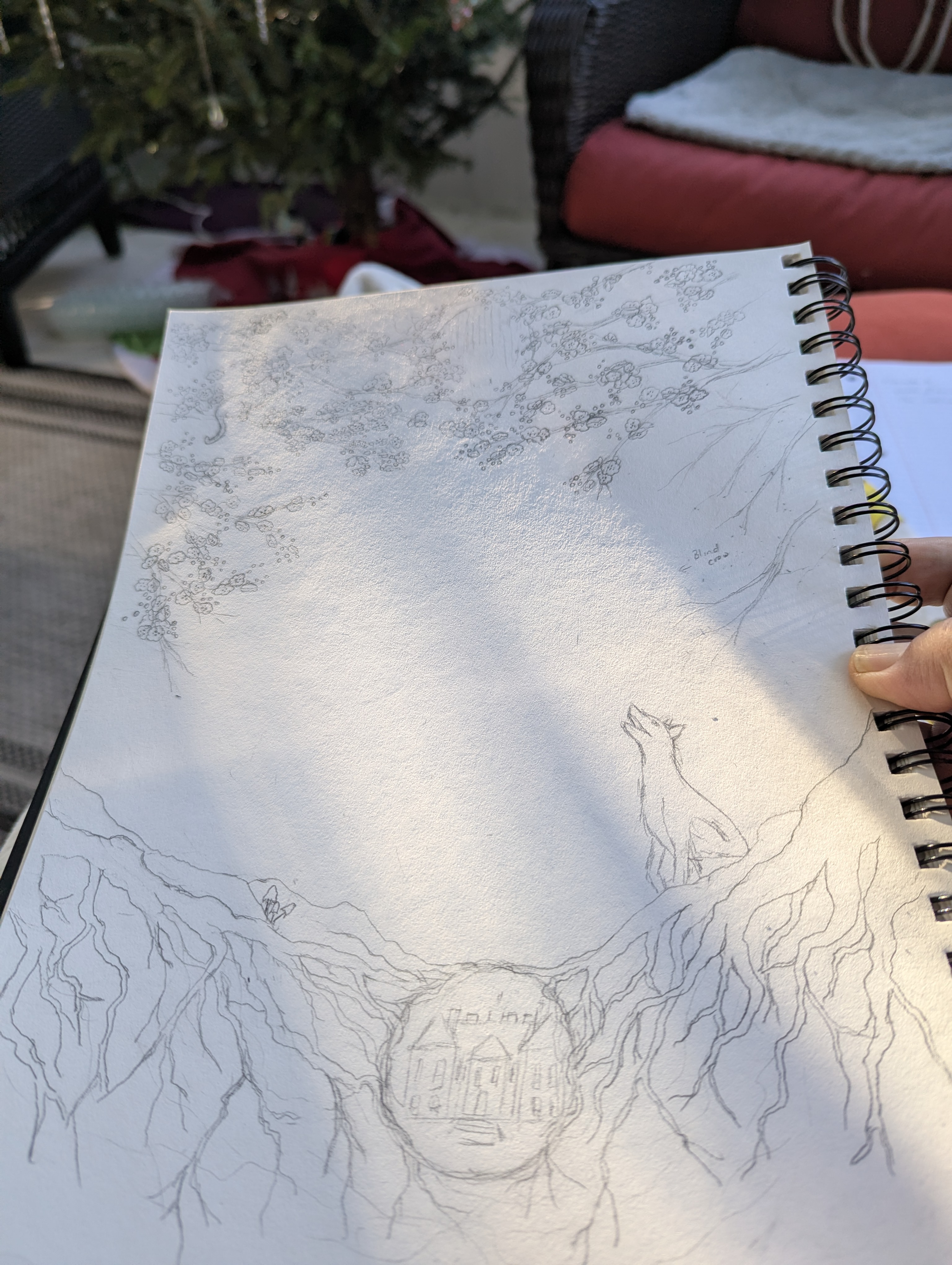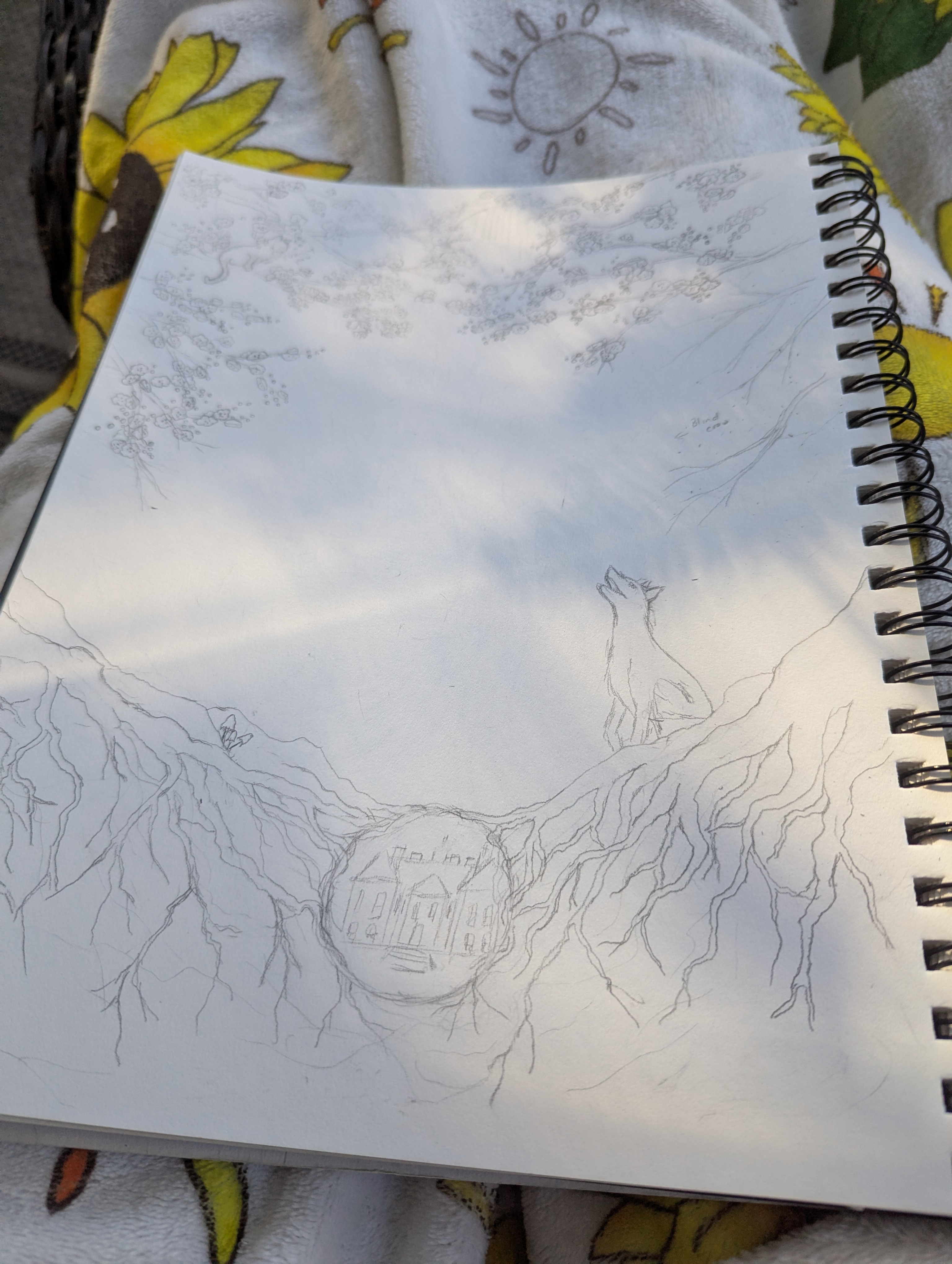 Cover concept art for The White Hind. The morning sun was distracting me a little bit! 🙂