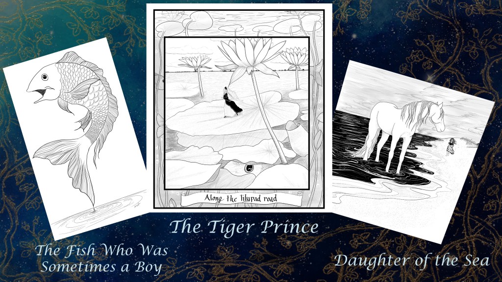 The designs are still being finalized, so if you have a suggestion for what illustration you would like to see, let me know! You can find the concepts for some of them here, in Artwork & Illustrations, or by reading the stories in my Fairytale Series, the first of which is Daughter of the Sea.